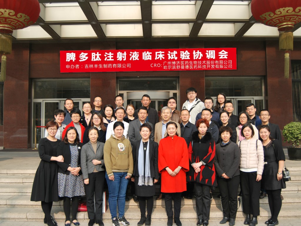 2018年11月3日,由吉林豐生制藥有限公司申辦、廣州博濟(jì)醫(yī)藥生物技術(shù)股份有限公司和哈爾濱舒曼德醫(yī)藥科技開發(fā)有限公司協(xié)辦、博惠康(北京)數(shù)據(jù)科技有限公司共同參與的“脾多肽注射液臨床試驗(yàn)協(xié)調(diào)會“在北京前門建國飯店順利召開。